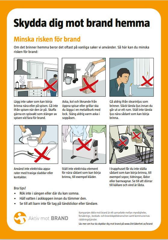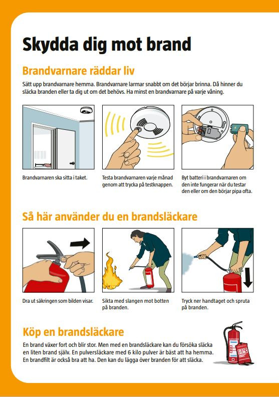 Hej. Tänk på att ha aktuellt brandskydd hemma, så som brandvarnare, brandfilt samt skum eller pulver släckare. Testa gärna av att er brandvarnare så att denna funkar.